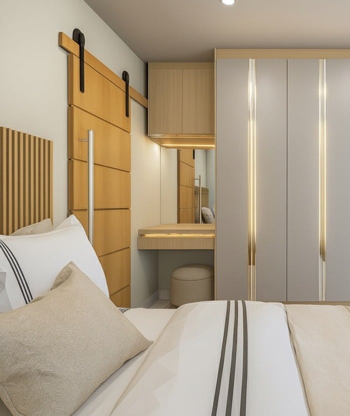 Viemos de trajetórias complementares e um incômodo em comum: “por que é tão difícil ter um projeto bonito e bem executado, no prazo?”. A resposta virou processo. Hoje, cada ambiente nasce no 3D com luz, materiais e ferragens fiéis; você aprova o que vai receber. Depois, entramos em produção e instalação com cronograma claro, comunicação direta e revisão de qualidade em cada etapa.